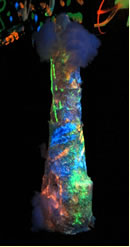 作品名:あやしく光るタワー 【作者の思いや声など】 ペットボトルなどの空き容器を型にして、高くそびえるタワーをつくることができました。スパッタリングの技法で蛍光塗料を付けたら、とてもきれいに光りました。かっこいいランプシェードになり大満足です。 【指導者】 名古屋市立西城小学校 沢代 宣往 | |
